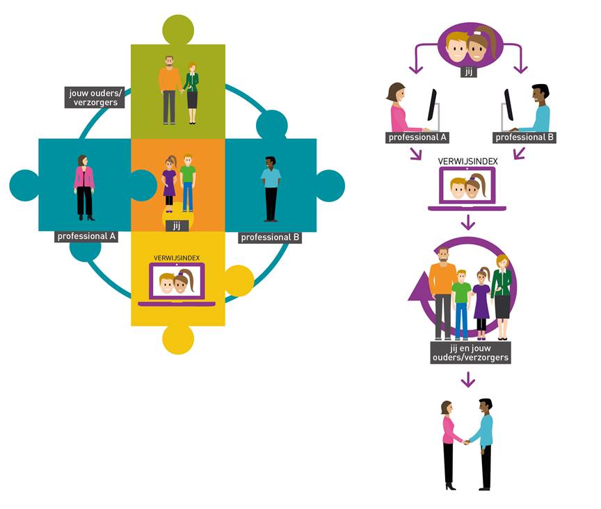 Als er meer professionals bij jou betrokken zijn, zorgt de Verwijsindex dat zij bij elkaar in beeld komen.